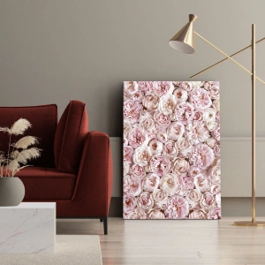 La tela "Letto di rose" è una decorazione unica che unisce la bellezza della natura a una sottile eleganza. Una composizione di numerose rose nei toni pastello del rosa riempie l'intera superficie dell'immagine, creando armonia e un carattere romantico.