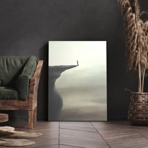 Quadro su tela - Stampe su Tela - Sagoma di una figura sul bordo di una scogliera in un paesaggio nebbioso - 100x70cm - Certamente verso l'alto! - Decorazione murale moderna per soggiorno e camera da letto ARTTOR
