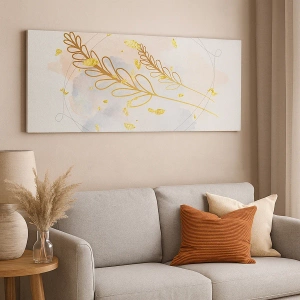 Quadro su tela - Stampe su Tela - Un delicato motivo a foglia dorata su uno sfondo pastello con dettagli acquerellati. - 100x70cm - Soffio d'oro - Decorazione murale moderna per soggiorno e camera da letto ARTTOR