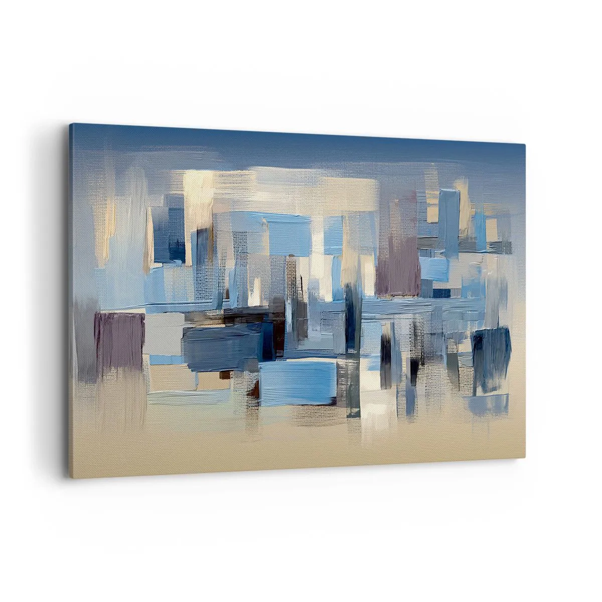 Quadro su tela - Stampe su Tela - Forme geometriche nei toni del blu e del beige - 100x70cm - Struttura blu - Decorazione murale moderna per soggiorno e camera da letto ARTTOR