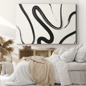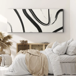 Quadro su tela - Stampe su Tela - Linee curve in bianco e nero su uno sfondo chiaro - 120x50cm - Capriccio bianco e nero - Decorazione murale moderna per soggiorno e camera da letto ARTTOR