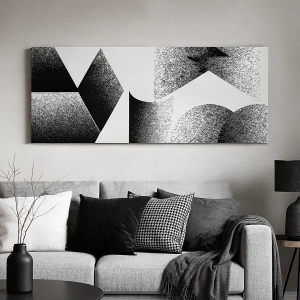 - Questo dipinto in bianco e nero presenta una composizione minimalista di forme geometriche, come angoli e ovali. È la scelta ideale per interni moderni, che enfatizzano semplicità ed eleganza.