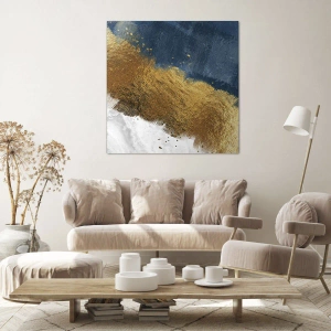 Quadro su tela - Stampe su Tela - Una composizione astratta nei toni dell'oro, del blu e del bianco. - 160x50cm - I colori dell'estate - Decorazione murale moderna per soggiorno e camera da letto ARTTOR