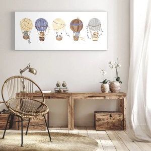 "Amici in viaggio" è una proposta per genitori e bambini che apprezzano l'armonia e i motivi ispiratori nell'arte. Figure di animali fiabeschi in palloncini introducono elementi di leggerezza e delicatezza nello spazio, aggiungendo al contempo un fascino unico agli interni. Il dipinto si integra perfettamente con composizioni pastello e decorazioni per bambini.