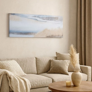 Quadro su tela - Stampe su Tela - Paesaggio invernale astratto nei toni del bianco e del blu - 120x50cm - Composizione invernale - Decorazione murale moderna per soggiorno e camera da letto ARTTOR