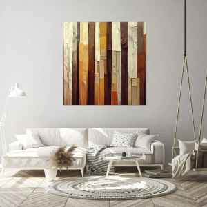 Quadro su tela - Stampe su Tela - Composizione geometrica nei toni del legno e dell'oro - 140x50cm - L'inno dei legni boschivi - Decorazione murale moderna per soggiorno e camera da letto ARTTOR