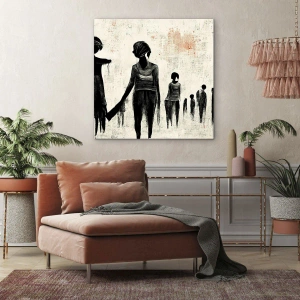 Quadro su tela - Stampe su Tela - Figure in una composizione monocromatica su uno sfondo chiaro - 70x50cm - Contro la solitudine - Decorazione murale moderna per soggiorno e camera da letto ARTTOR