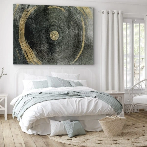 Quadro su tela - Stampe su Tela - Cerchi concentrici con accenti dorati - 70x50cm - Cambiamento e persistenza - Decorazione murale moderna per soggiorno e camera da letto ARTTOR