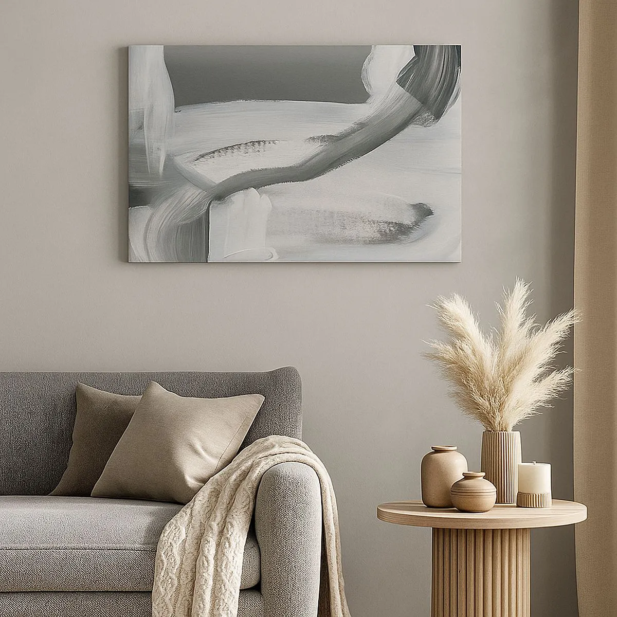 Quadro su tela - Stampe su Tela - Astrazione grigia e bianca con linee dinamiche - 120x80cm - Movimento deciso - Decorazione murale moderna per soggiorno e camera da letto ARTTOR
