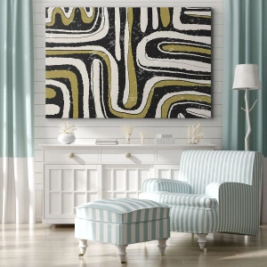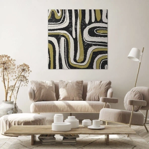 Quadro su tela - Stampe su Tela - Motivo astratto in nero, bianco e oro - 120x80cm - Composizione: strade e vicoli - Decorazione murale moderna per soggiorno e camera da letto ARTTOR