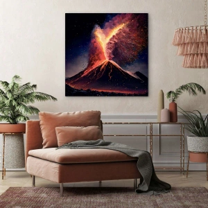 Quadro su tela - Stampe su Tela - Un'eruzione vulcanica unica di notte con colori dinamici. - 80x120cm - Bellezza e minaccia - Decorazione murale moderna per soggiorno e camera da letto ARTTOR