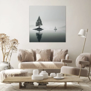 Quadro su tela - Stampe su Tela - Un paesaggio minimalista con un albero su un'isola e una barca a vela. - 120x80cm - Paesaggio onirico - Decorazione murale moderna per soggiorno e camera da letto ARTTOR