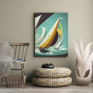 - Questa stampa su tela 70x50 cm presenta un'illustrazione dinamica di barche a vela in un mare in tempesta. Una scelta perfetta per gli amanti dello stile nautico e dell'arredamento moderno.