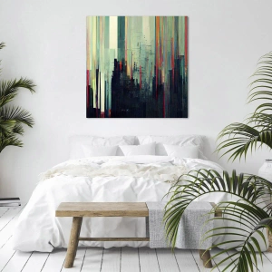 Quadro su tela - Stampe su Tela - Astrazione con linee verticali e skyline della città - 100x70cm - Città futuristica - Decorazione murale moderna per soggiorno e camera da letto ARTTOR