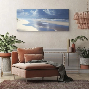 Quadro su tela - Stampe su Tela - Una spiaggia sabbiosa con onde sotto un cielo azzurro - 70x100cm - Vacanze in paradiso - Decorazione murale moderna per soggiorno e camera da letto ARTTOR