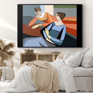 Quadro su tela - Stampe su Tela - Illustrazione astratta di due donne in stile cubista - 70x100cm - Il momento delle confidenze - Decorazione murale moderna per soggiorno e camera da letto ARTTOR