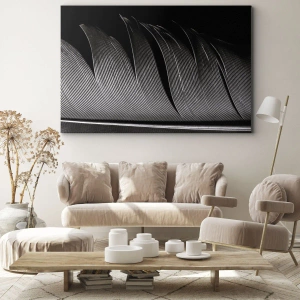 Quadro su tela - Stampe su Tela - Texture di piume bianche e nere in stile minimalista - 100x70cm - Piuma: struttura meravigliosa - Decorazione murale moderna per soggiorno e camera da letto ARTTOR