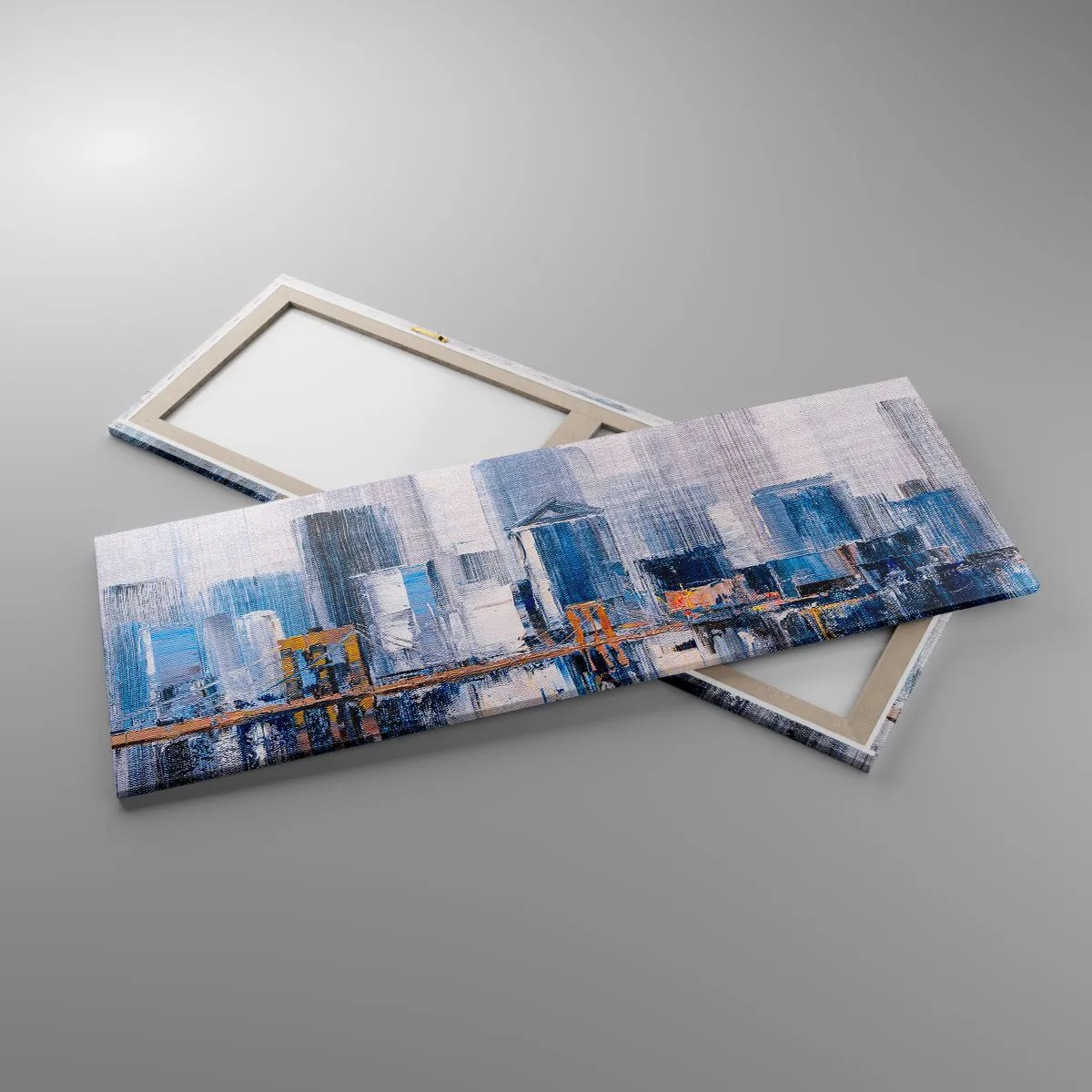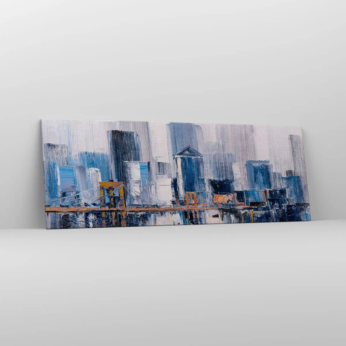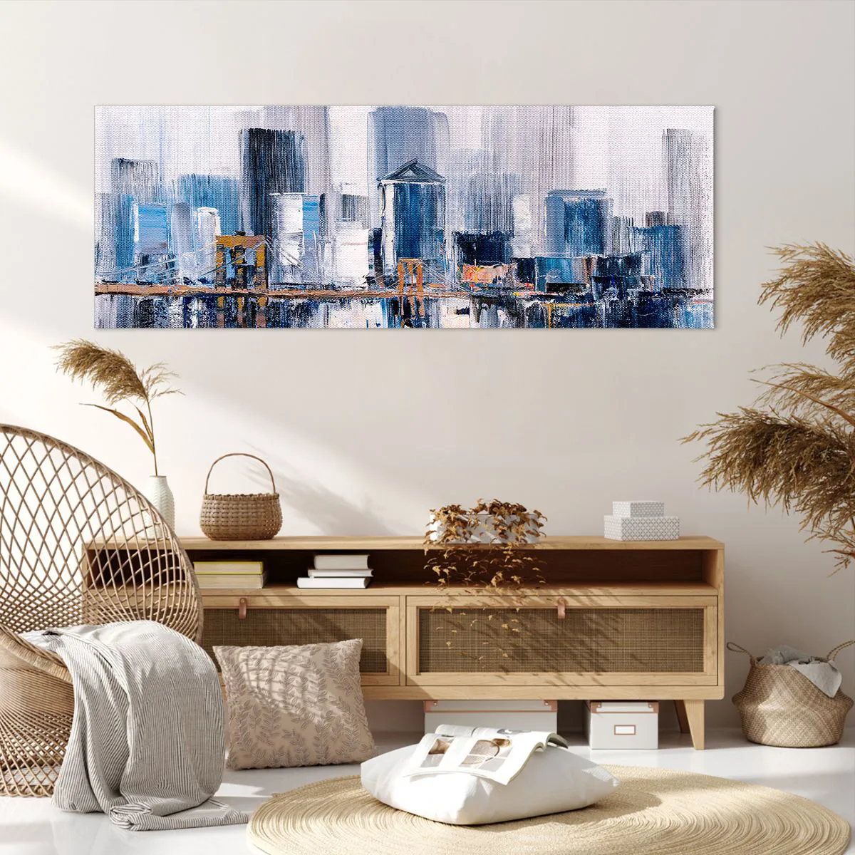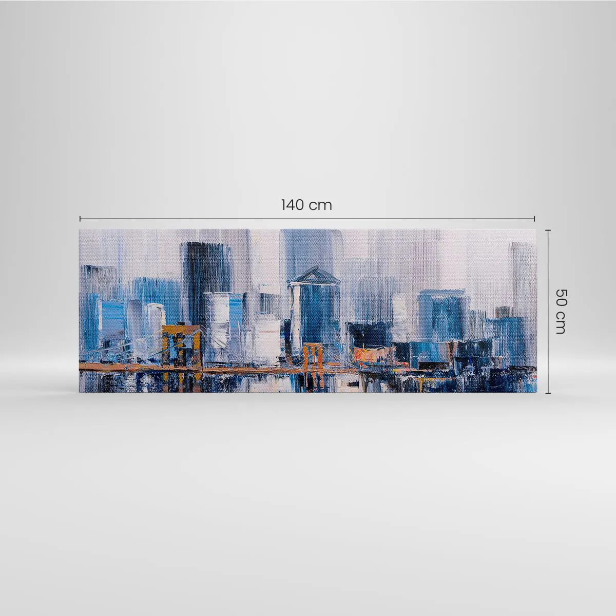Quadro su tela - Stampe su Tela - Panorama urbano astratto con sfumature di blu e giallo - 140x50cm - Impressione di New York - Decorazione murale moderna per soggiorno e camera da letto ARTTOR