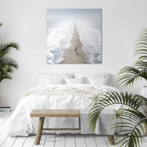 Quadro su tela - Stampe su Tela - Una figura su una strada solitaria in mezzo a un vasto paesaggio acquatico - 100x70cm - Un futuro luminoso - Decorazione murale moderna per soggiorno e camera da letto ARTTOR