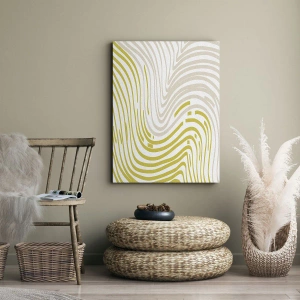 • Una stampa su tela con un motivo astratto di linee ondulate nei toni del giallo e del beige. Perfetta per interni che apprezzano la sobrietà e uno stile moderno.