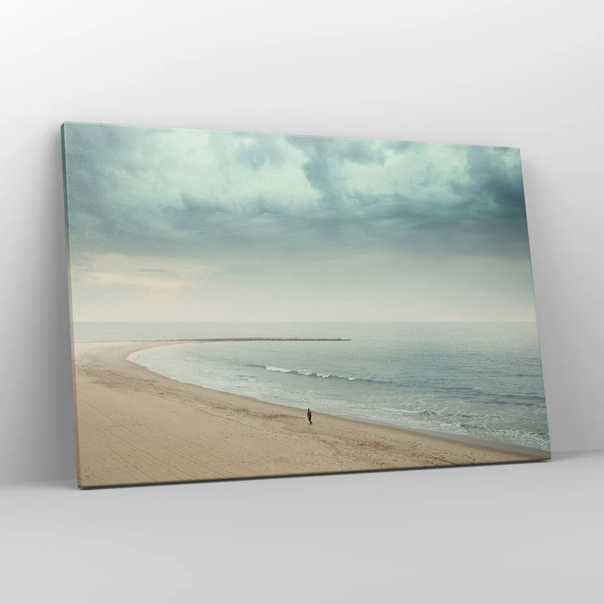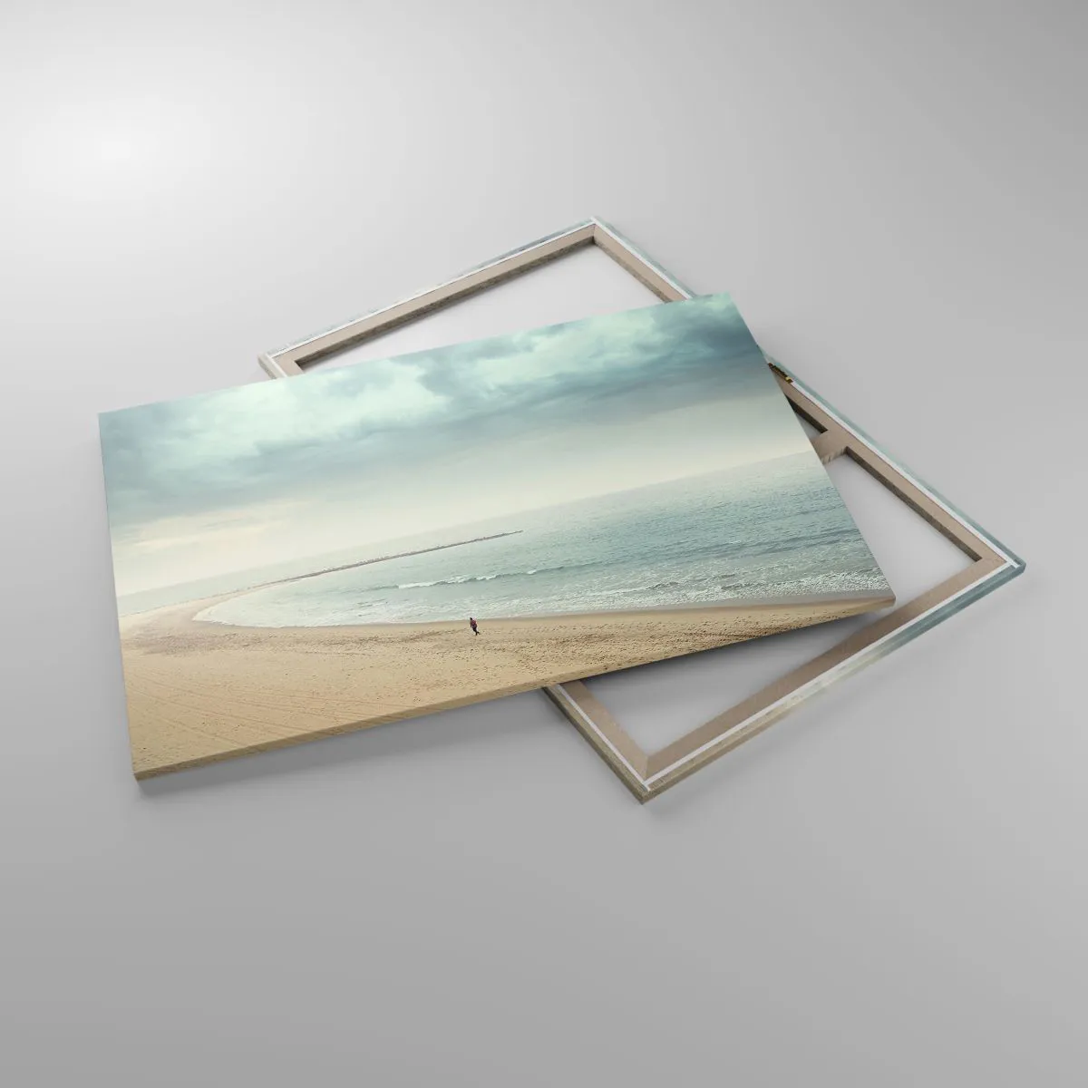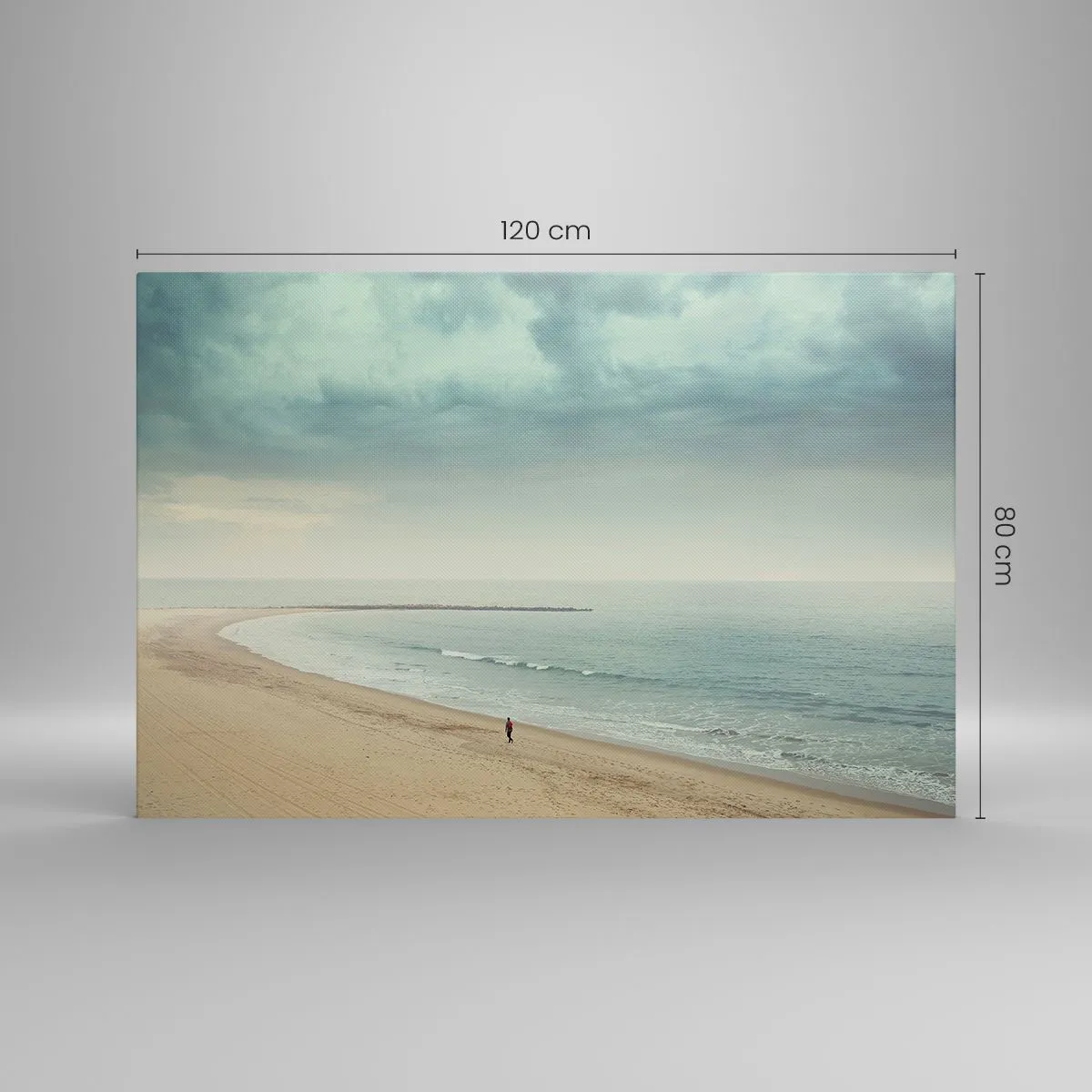 Quadro su tela - Stampe su Tela - Una figura solitaria su una spiaggia deserta in riva al mare calmo - 120x80cm - Cercando la pace - Decorazione murale moderna per soggiorno e camera da letto ARTTOR