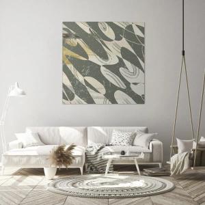 Quadro su tela - Stampe su Tela - Forme dinamiche nei toni del verde e dell'oro - 100x70cm - Astrazione ritmica - Decorazione murale moderna per soggiorno e camera da letto ARTTOR