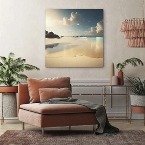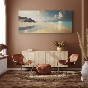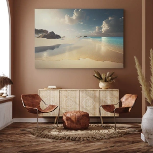 Quadro su tela - Stampe su Tela - Una spiaggia soleggiata con mare azzurro e rocce - 70x100cm - Giornata ideale - Decorazione murale moderna per soggiorno e camera da letto ARTTOR