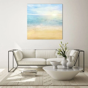 Quadro su vetro - Una spiaggia soleggiata con mare e cielo azzurri - 100x70cm - Il grande blu - Decorazione murale moderna per soggiorno e camera da letto ARTTOR