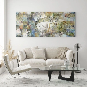 Quadro su vetro - Astrazione colorata con forme e linee geometriche - 160x50cm - Rimpasto geometrico - Decorazione murale moderna per soggiorno e camera da letto ARTTOR
