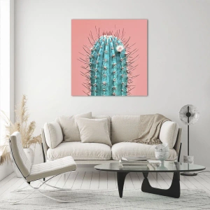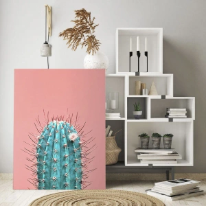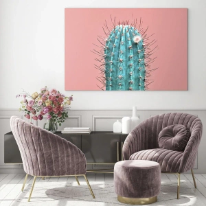 Quadro su vetro - Un'interpretazione artistica di un cactus su uno sfondo rosa - 160x50cm - Stai attento - Decorazione murale moderna per soggiorno e camera da letto ARTTOR