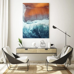 Quadro su vetro - Vista aerea della superficie dell'oceano e della riva della spiaggia - 120x80cm - Il tocco dell'oceano - Decorazione murale moderna per soggiorno e camera da letto ARTTOR