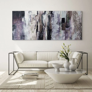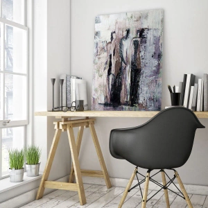 Quadro su vetro - Sagome astratte di figure su uno sfondo di vernice strutturata - 50x70cm - Triade misteriosa - Decorazione murale moderna per soggiorno e camera da letto ARTTOR