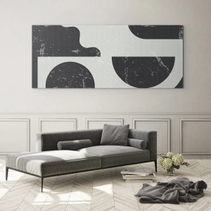 Quadro su vetro - Motivi geometrici nelle tonalità del nero e del grigio - 140x50cm - Composizione sopra e sotto - Decorazione murale moderna per soggiorno e camera da letto ARTTOR