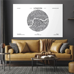 Quadro su vetro - Una mappa dettagliata di Londra in stile grafico in bianco e nero. - 50x70cm - Anatomia di Londra - Decorazione murale moderna per soggiorno e camera da letto ARTTOR