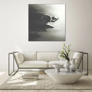 Quadro su vetro - Una silhouette in bianco e nero di una figura in corsa, realizzata in uno stile dinamico e surreale. - 70x100cm - Inarrestabile - Decorazione murale moderna per soggiorno e camera da letto ARTTOR