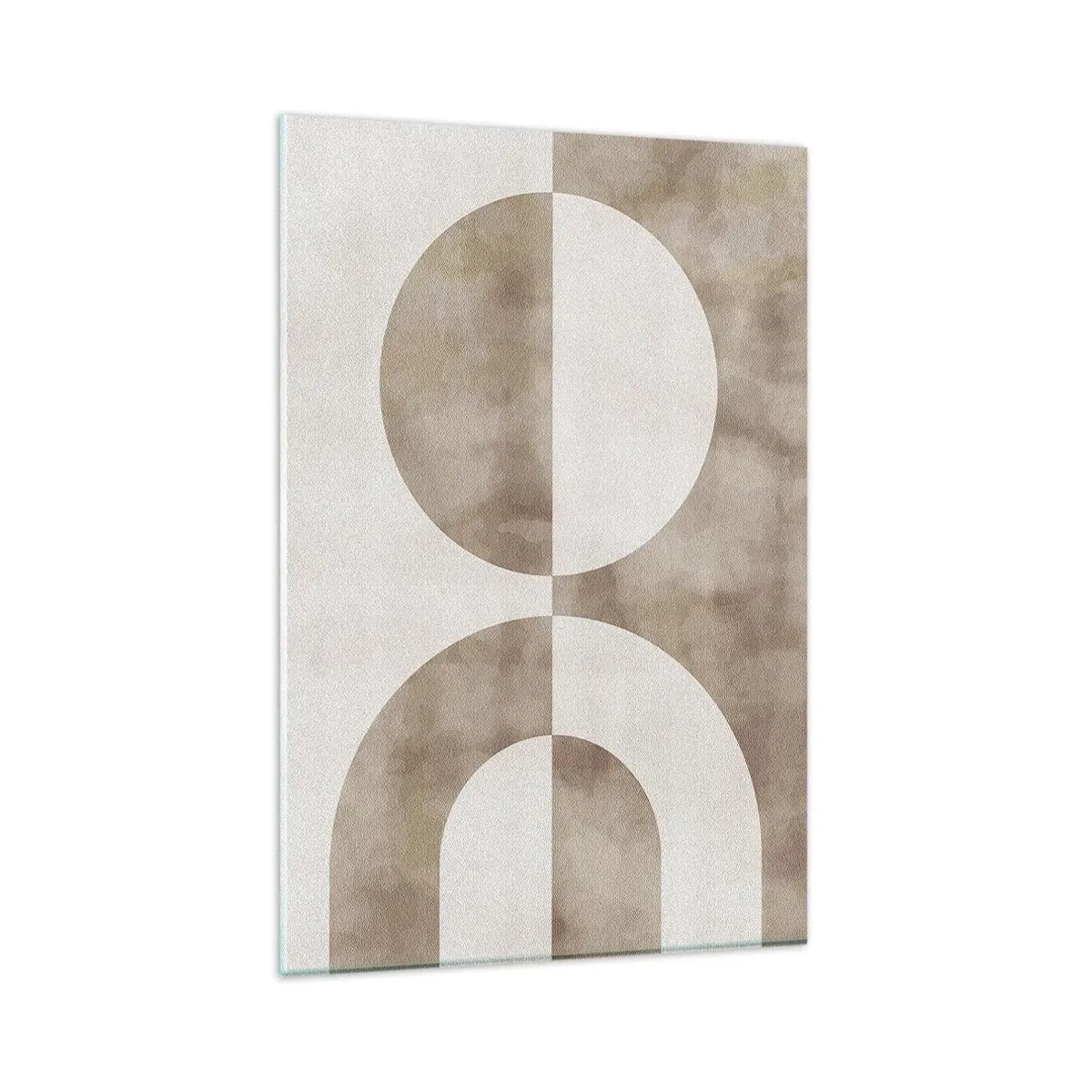 Quadro su vetro - Un dipinto astratto nei toni del beige con forme geometriche e simmetria. - 80x120cm - Analogie e differenze - Decorazione murale moderna per soggiorno e camera da letto ARTTOR