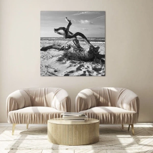 Quadro su vetro - Paesaggio in bianco e nero con un albero morto sulla spiaggia - 120x50cm - Scolpito dal mare - Decorazione murale moderna per soggiorno e camera da letto ARTTOR