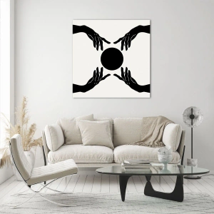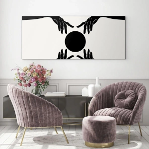 Quadro su vetro - Mani nere in una composizione simmetrica con una palla - 80x120cm - Segno misterioso - Decorazione murale moderna per soggiorno e camera da letto ARTTOR