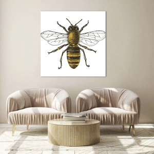 Quadro su vetro - Illustrazione dettagliata di un'ape su sfondo bianco - 80x120cm - Bella e buona - Decorazione murale moderna per soggiorno e camera da letto ARTTOR