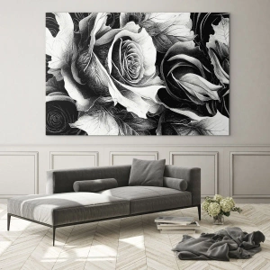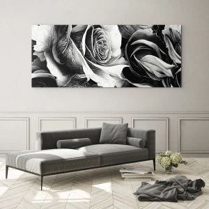 Quadro su vetro - Rose bianche e nere in una composizione elegante - 120x50cm - Sempre regina - Decorazione murale moderna per soggiorno e camera da letto ARTTOR
