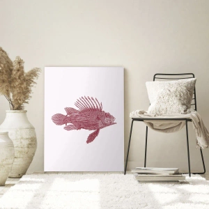 - Il dipinto raffigura un pesce esotico in uno schizzo preciso color bordeaux, posizionato su uno sfondo chiaro. La sua forma minimalista e il tema nautico lo rendono perfetto per un bagno o un interno moderno.