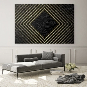 Quadro su vetro - Sfondo nero con motivo geometrico di linee dorate - 160x50cm - Geometria in stile glamour - Decorazione murale moderna per soggiorno e camera da letto ARTTOR