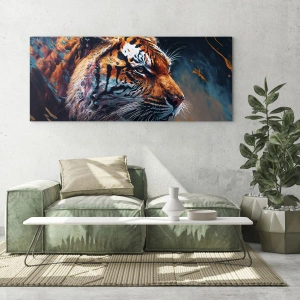 - Il dipinto raffigura il ritratto di una tigre catturato in una dinamica esplosione di colori, che unisce la bellezza naturale all'espressione artistica. È un mix di ferocia, forza e arte in un unico scatto.