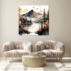 Quadro su vetro - L'autunno dorato sui monti - 70x70 cm