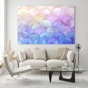 Quadro su vetro - Squame di perle in tonalità pastello di rosa, blu e viola - 70x50cm - Scaglie perlate - Decorazione murale moderna per soggiorno e camera da letto ARTTOR