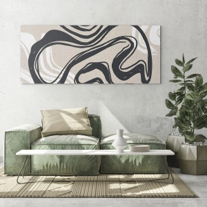 - Un'astrazione moderna caratterizzata da una linea nera dinamica su sfondo beige. Una composizione ritmica e fluida in stile minimalista con un tocco di espressività.