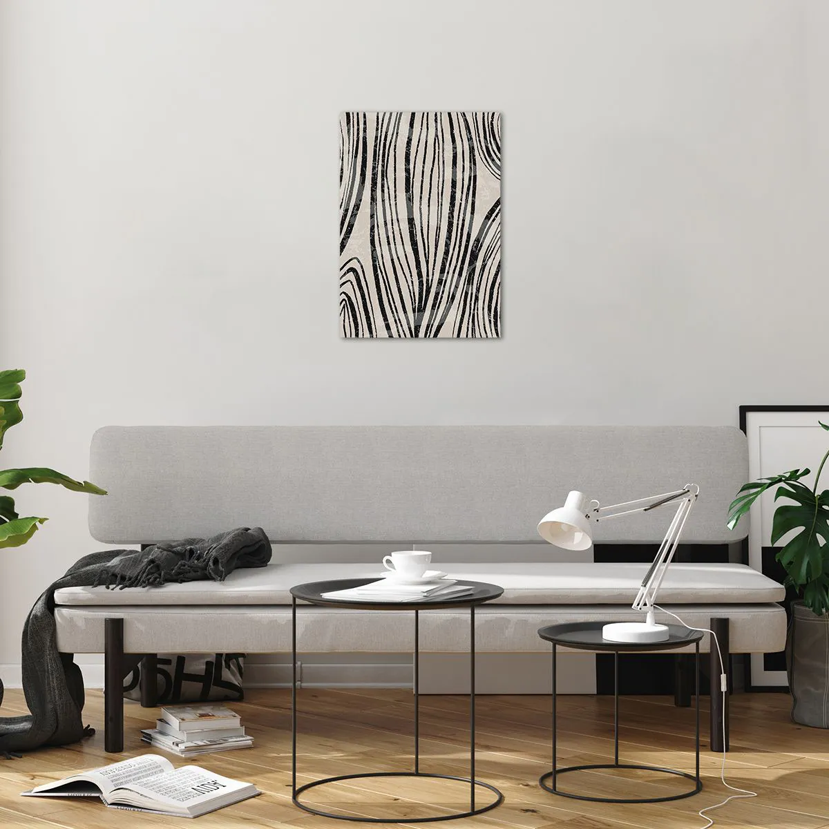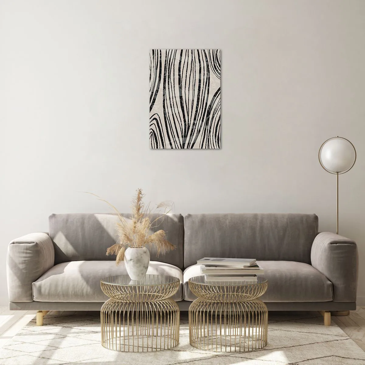 Quadro su vetro - Onde di linee nere su uno sfondo chiaro - 50x70cm - Una palude di linee - Decorazione murale moderna per soggiorno e camera da letto ARTTOR