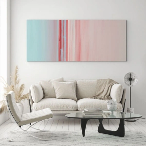 La stampa su vetro "Astrazione all'alba" è la quintessenza della bellezza e della delicatezza dei colori pastello. Strisce verticali nei toni del rosa e del blu si intrecciano delicatamente, creando una composizione coesa e suggestiva che ricorda la luce del mattino all'alba. La delicatezza di forme e colori attira l'attenzione e allo stesso tempo rilassa.