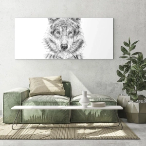 - Questo dipinto raffigura un realistico schizzo in bianco e nero di un lupo. La forma minimalista e l'espressione facciale espressiva trasmettono il carattere e la forza dell'animale. Perfetto per interni moderni e austeri.