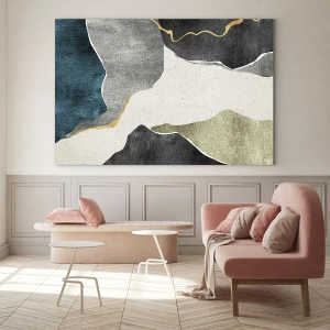 Quadro su vetro - Mosaico astratto con forme organiche e una linea dorata - 120x80cm - Composizione mosaico con filo d'oro - Decorazione murale moderna per soggiorno e camera da letto ARTTOR
